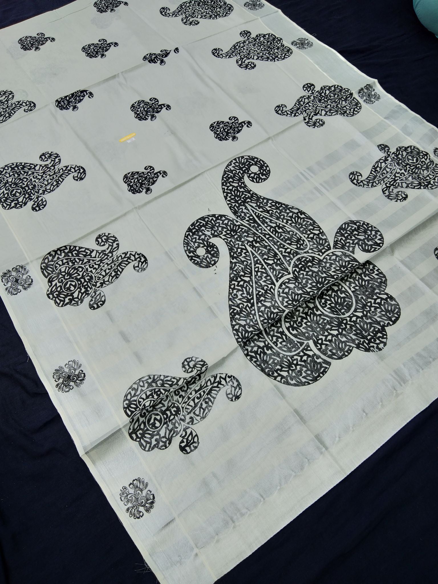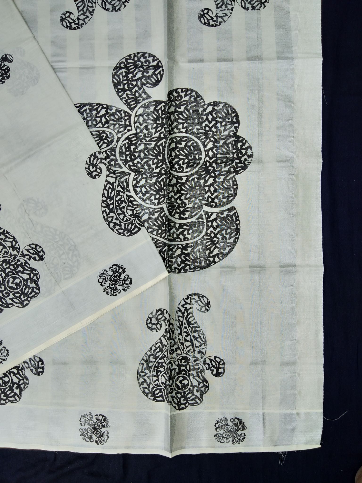 Printed Kerala Cotton Tissue (Silver Zari )