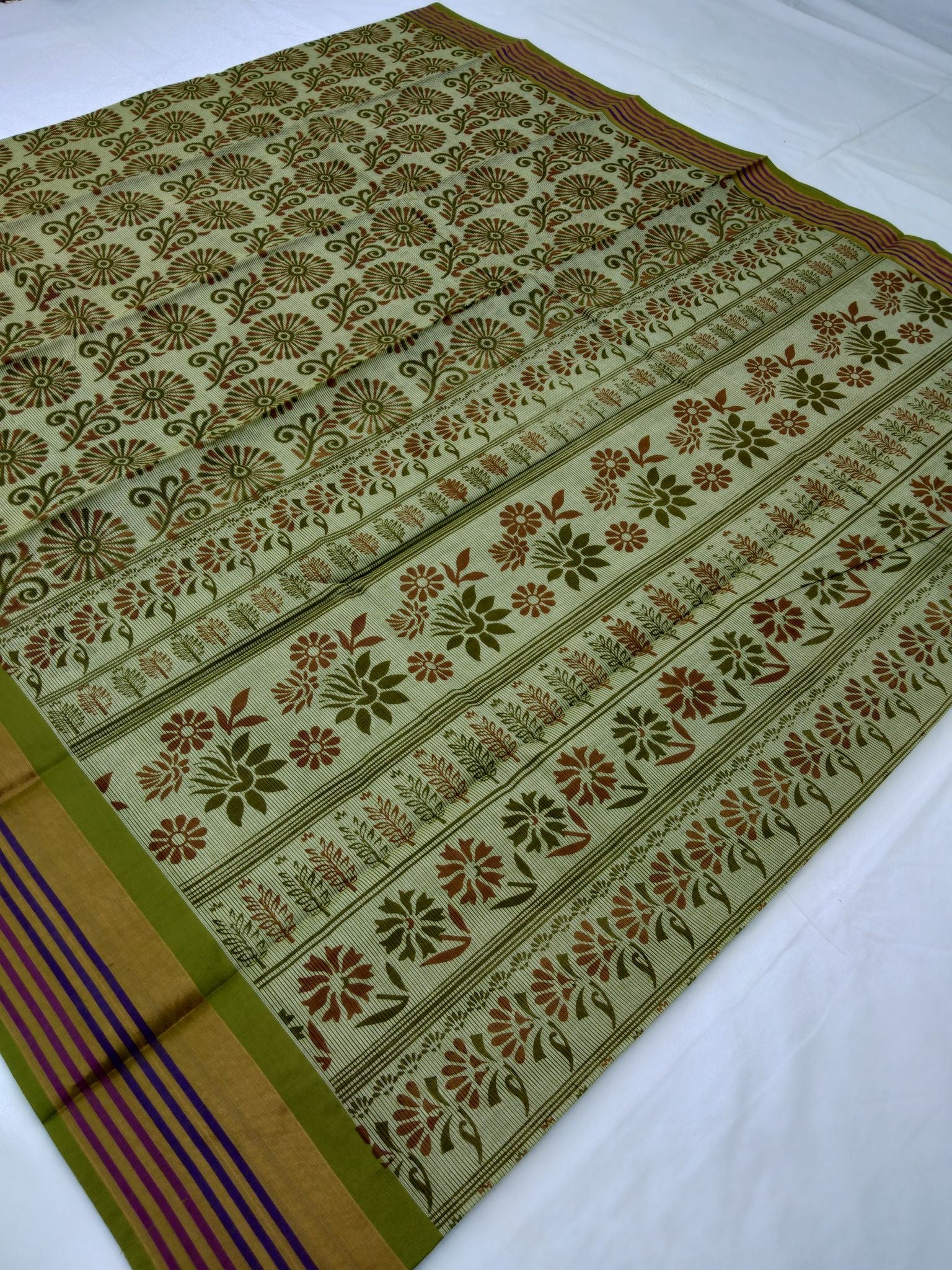 Printed Mangalagiri Cotton Saree With Zari Border
