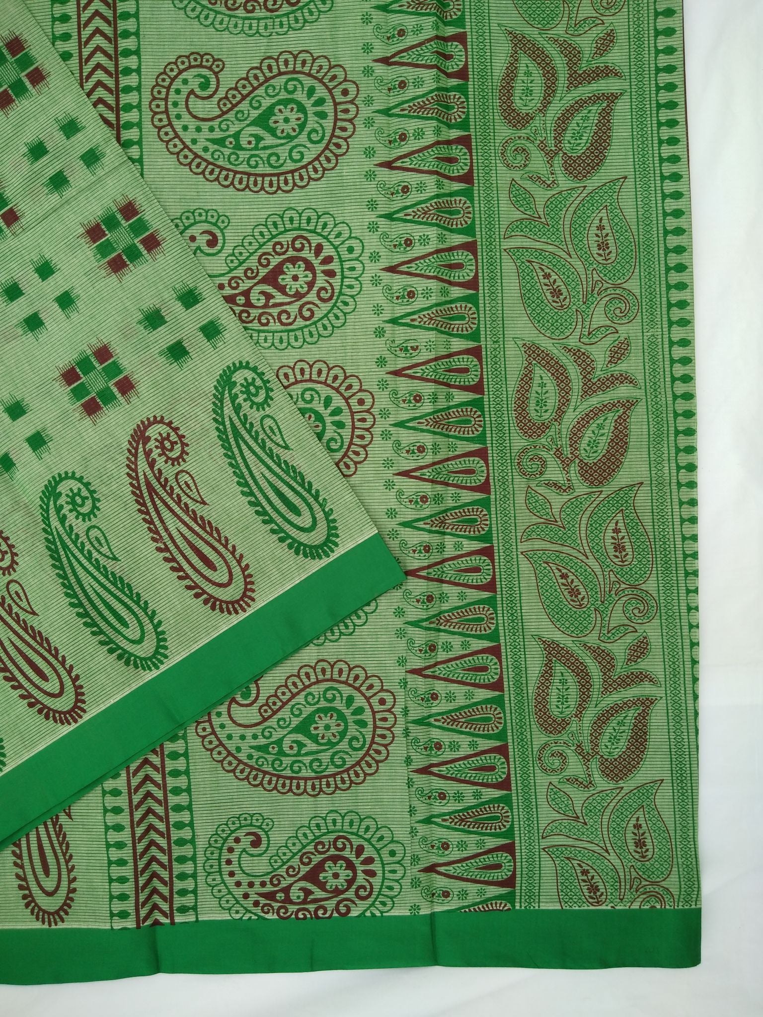 Printed Mangalagiri Cotton Sarees With Contrast Border