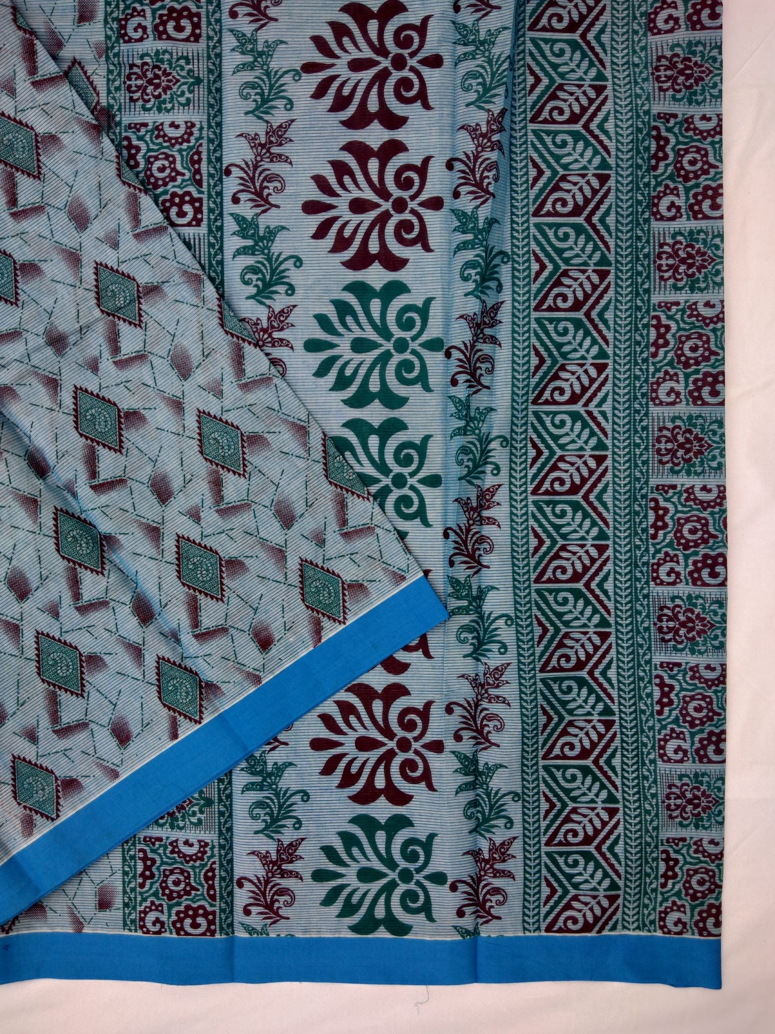 Printed Mangalagiri Cotton Sarees With Contrast Border