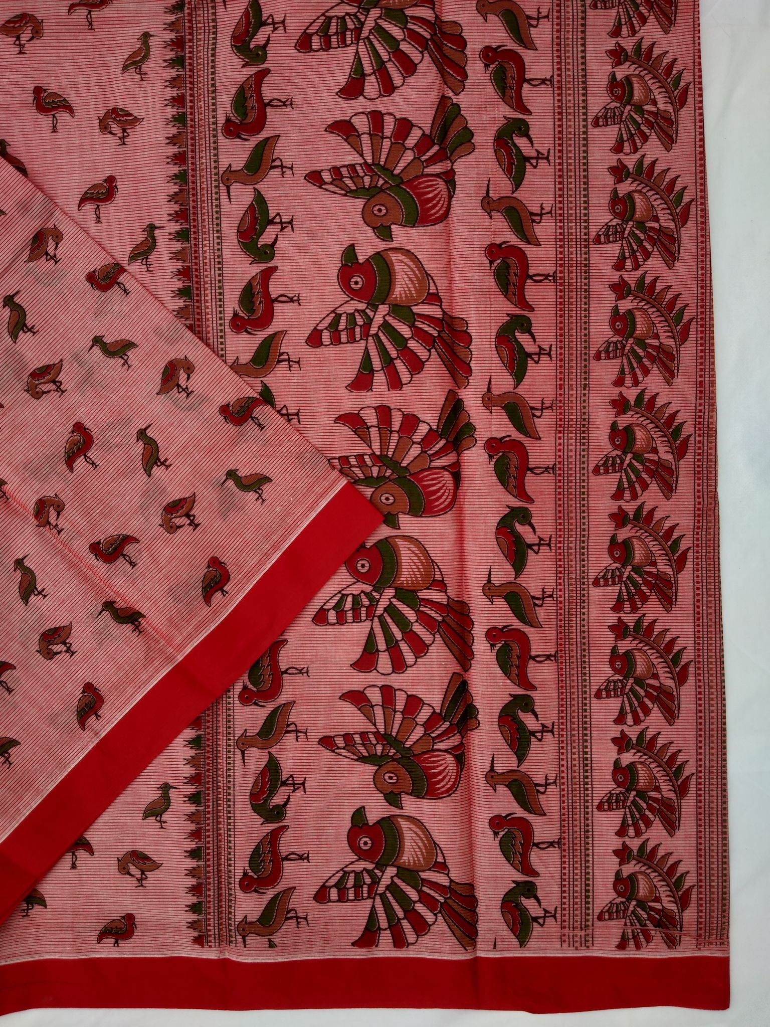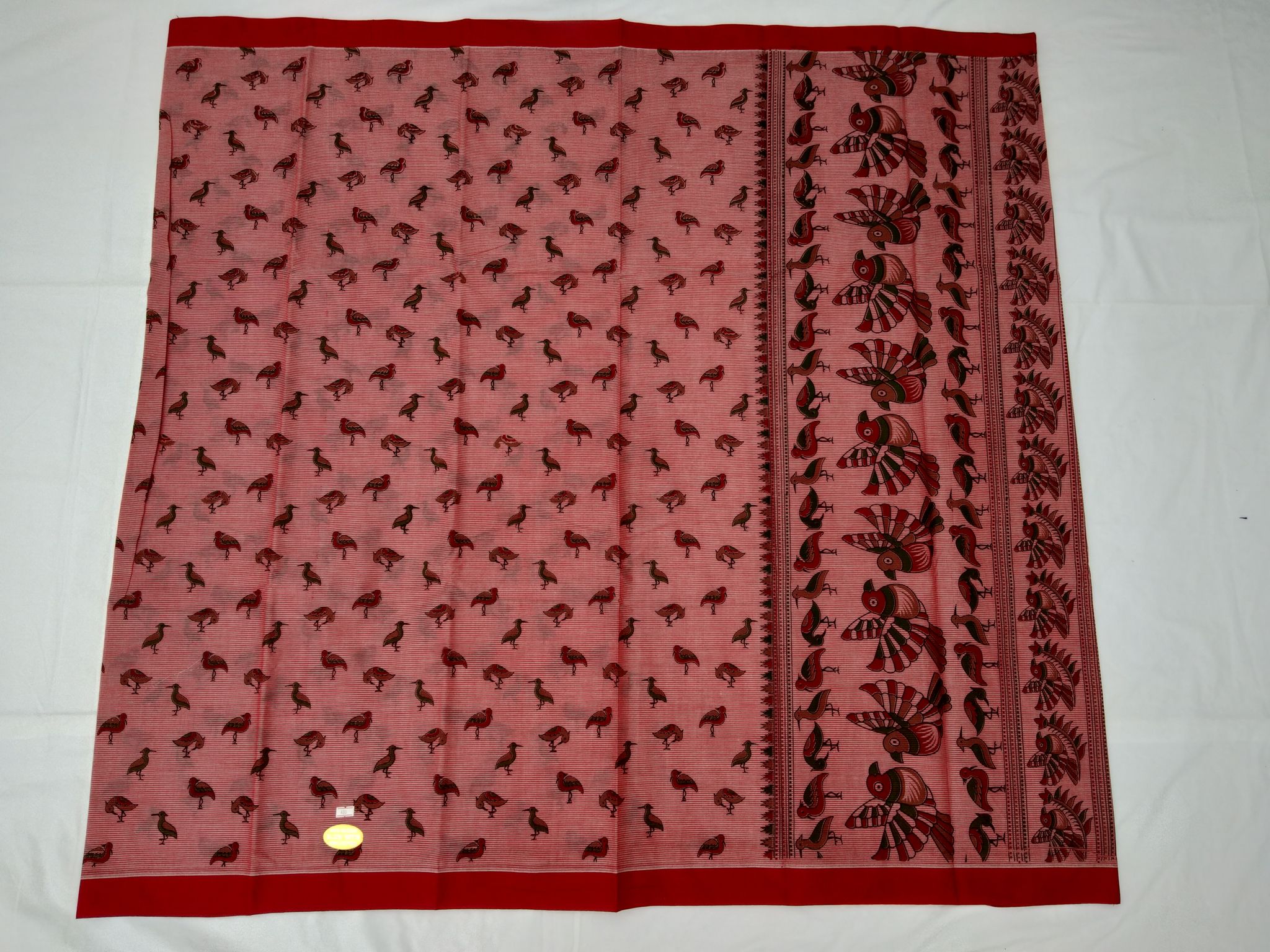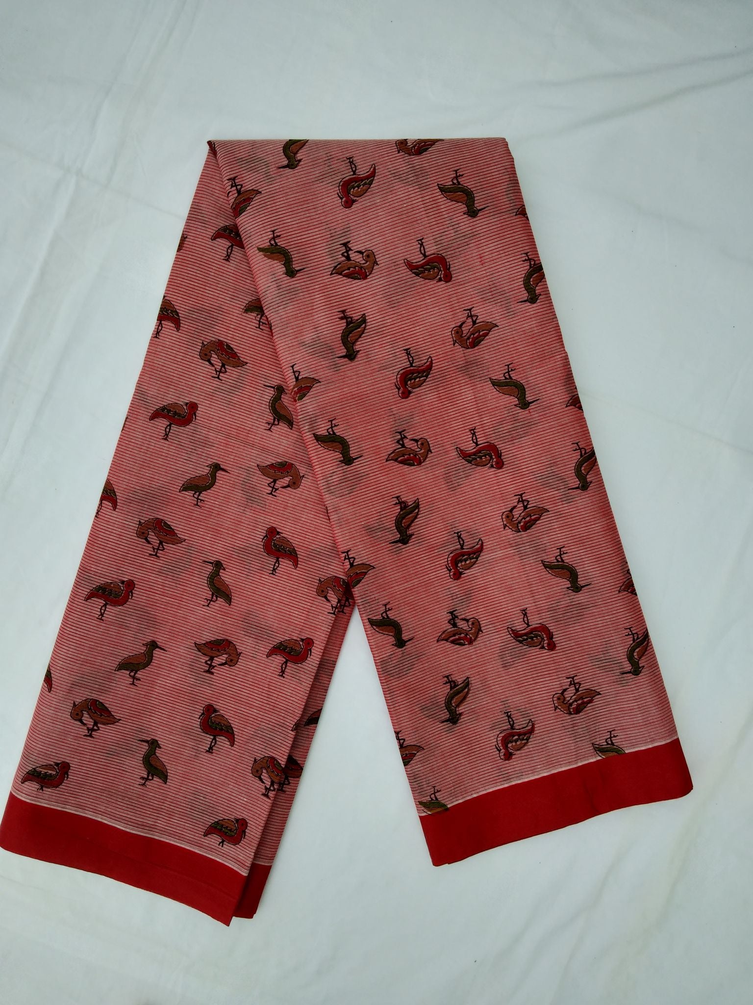 Printed Mangalagiri Cotton Sarees With Contrast Border