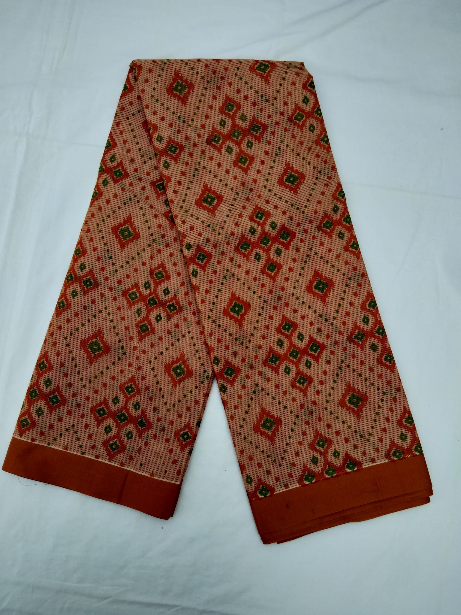 Printed Mangalagiri Cotton Sarees With Contrast Border
