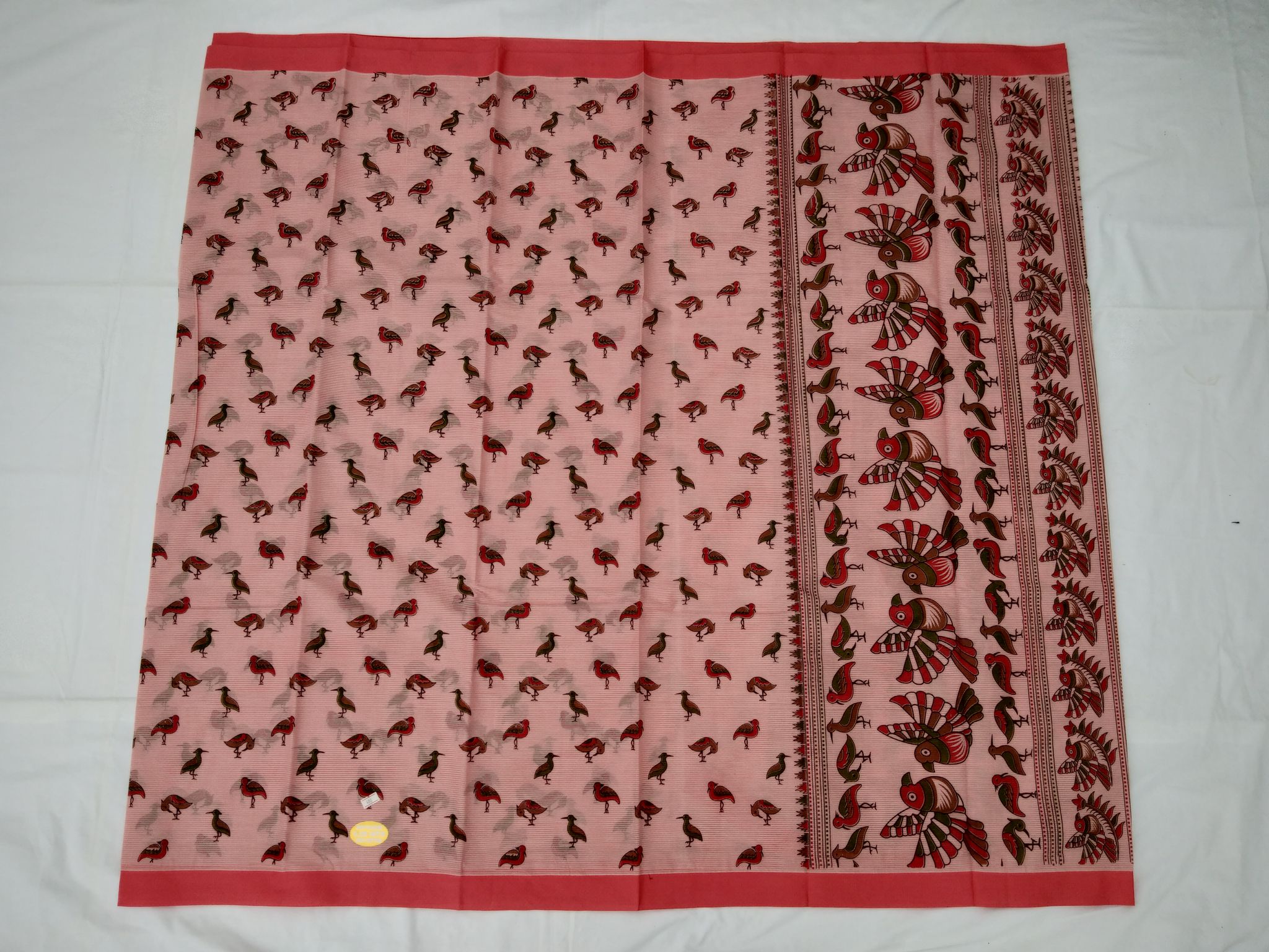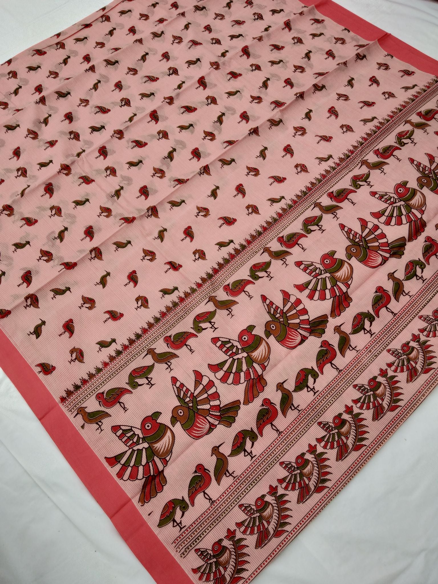 Printed Mangalagiri Cotton Sarees With Contrast Border