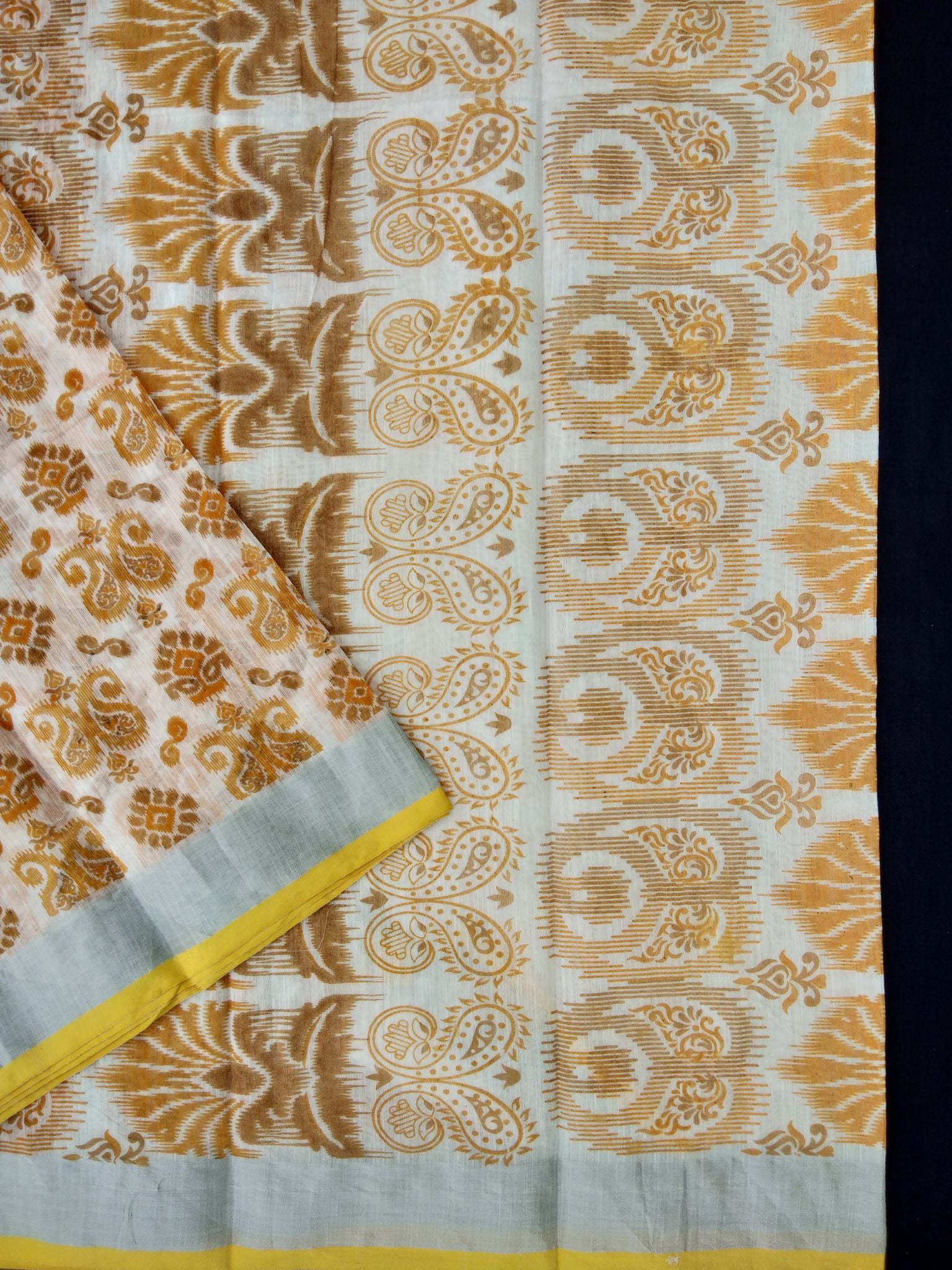 Printed Semi Cotton Slub Lenin With Silver Zari Border