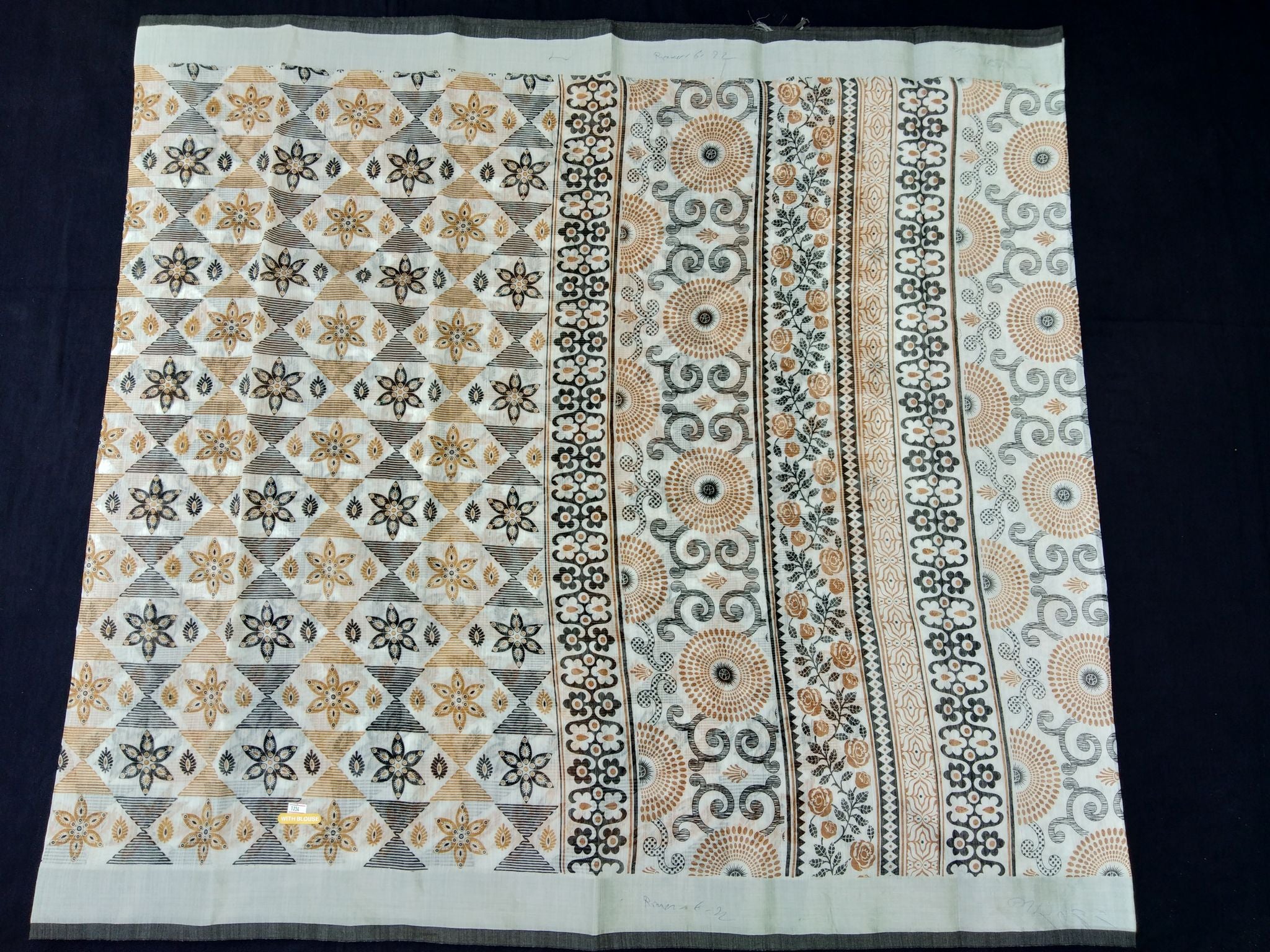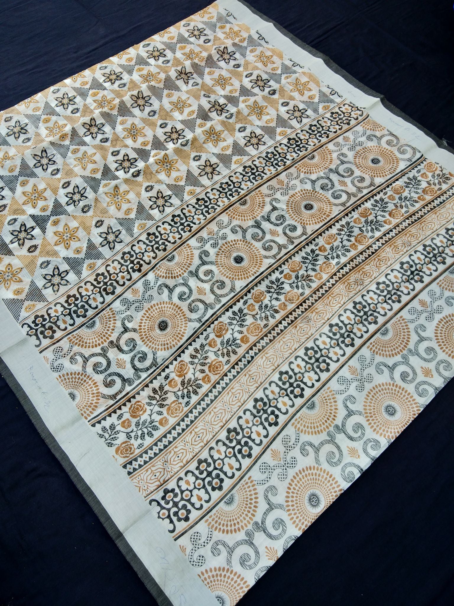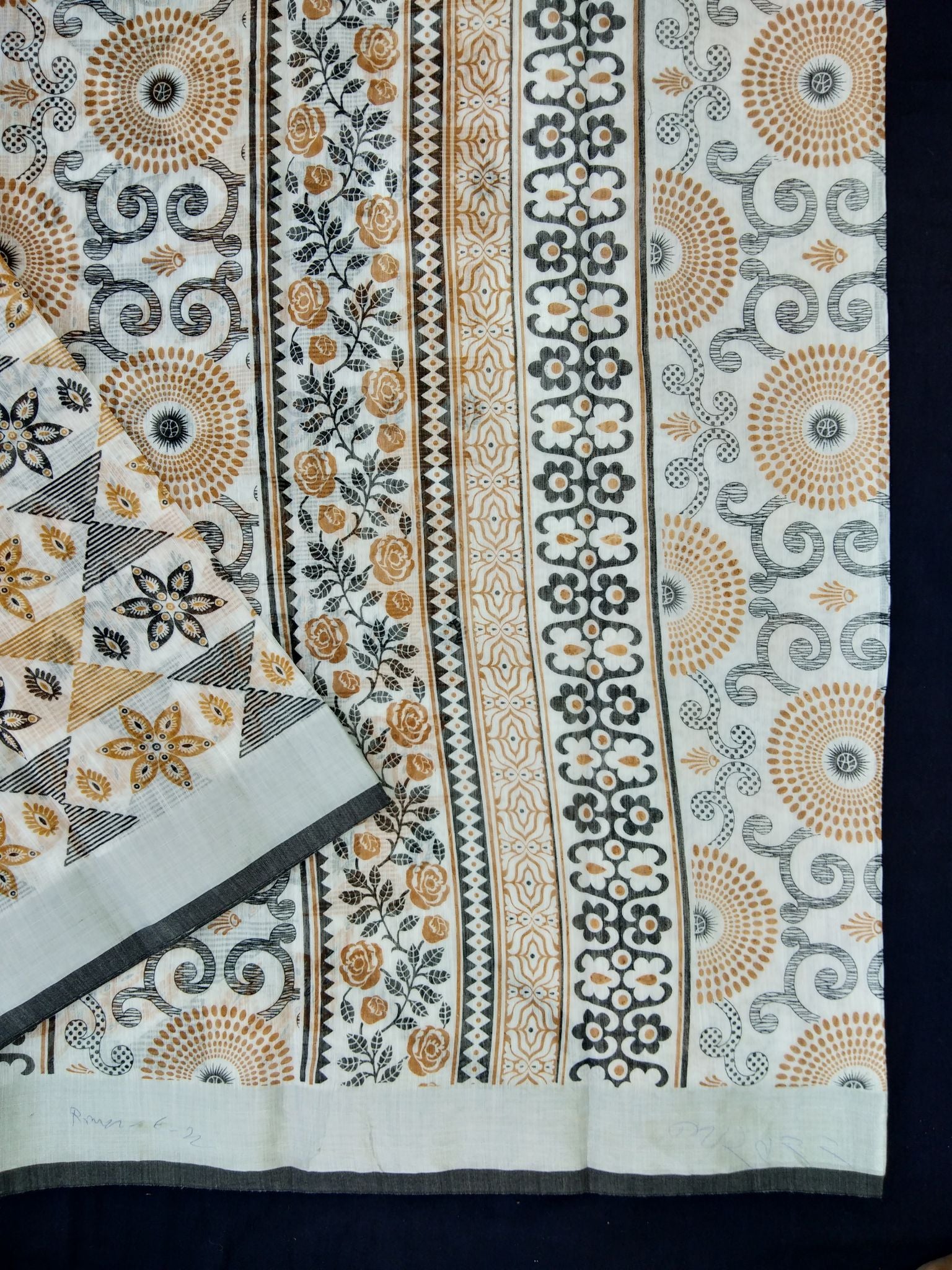 Printed Semi Cotton Slub Lenin With Silver Zari Border