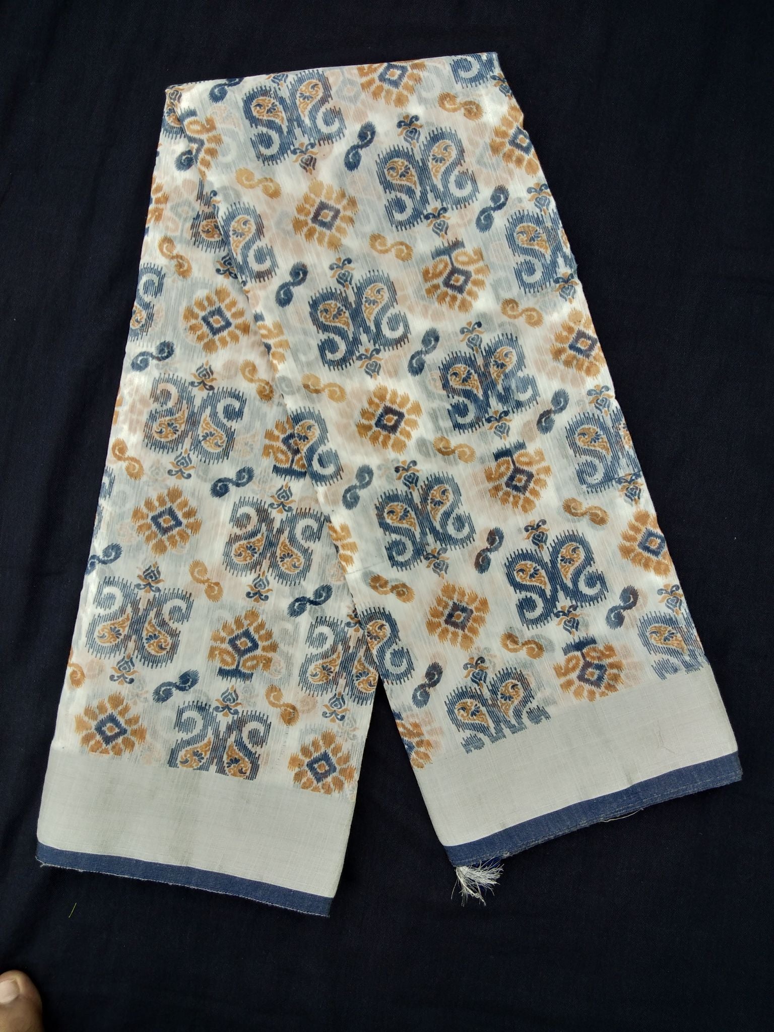 Printed Semi Cotton Slub Lenin With Silver Zari Border