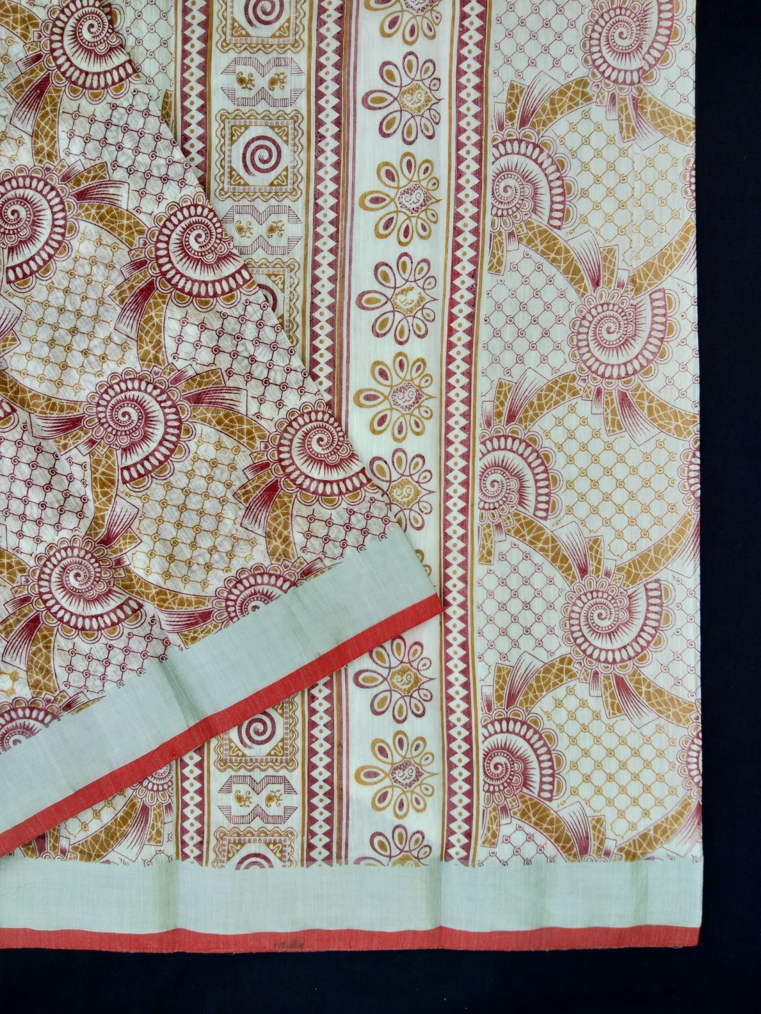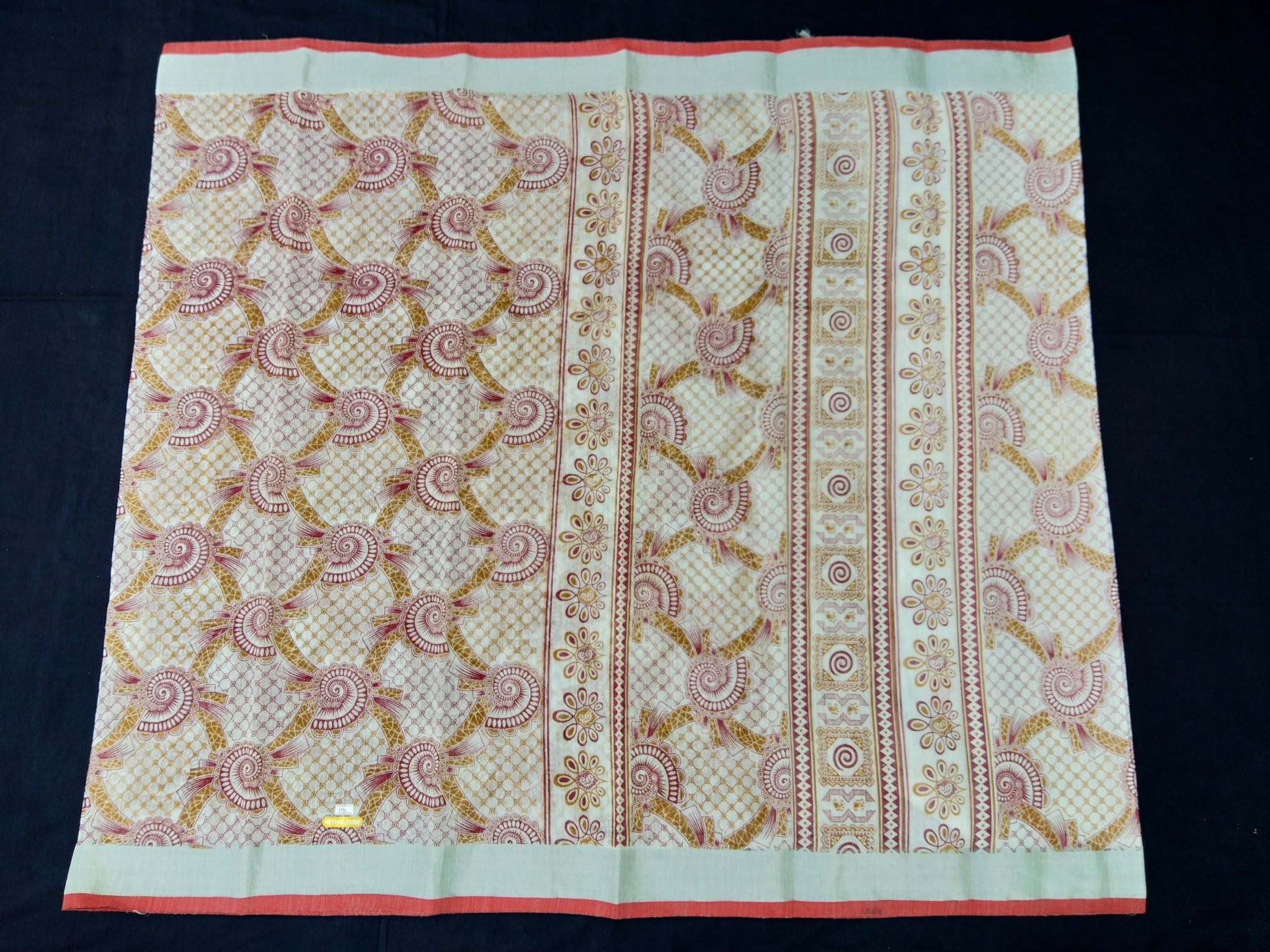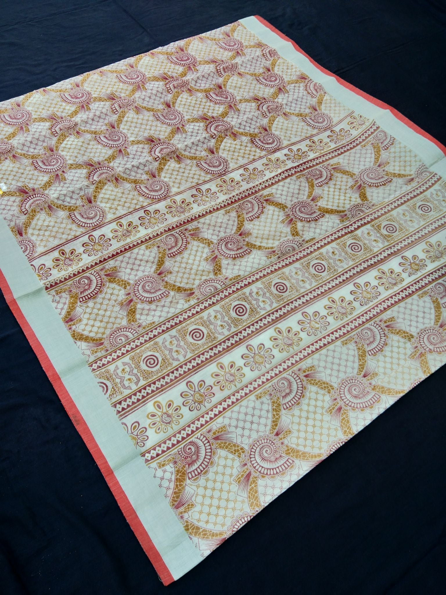 Printed Semi Cotton Slub Lenin With Silver Zari Border