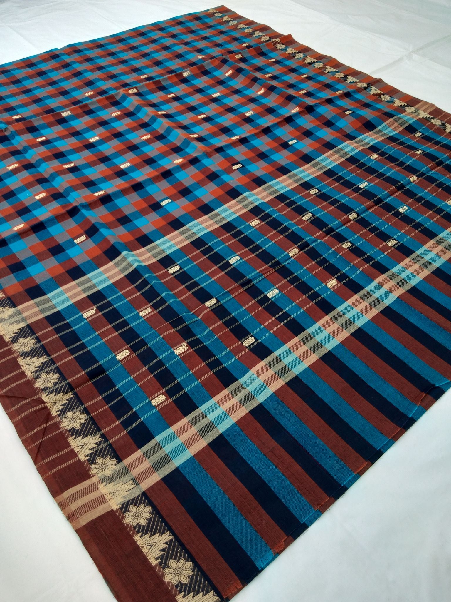 Trendy Chettinadu Cotton Sarees Comes With Checks Buta