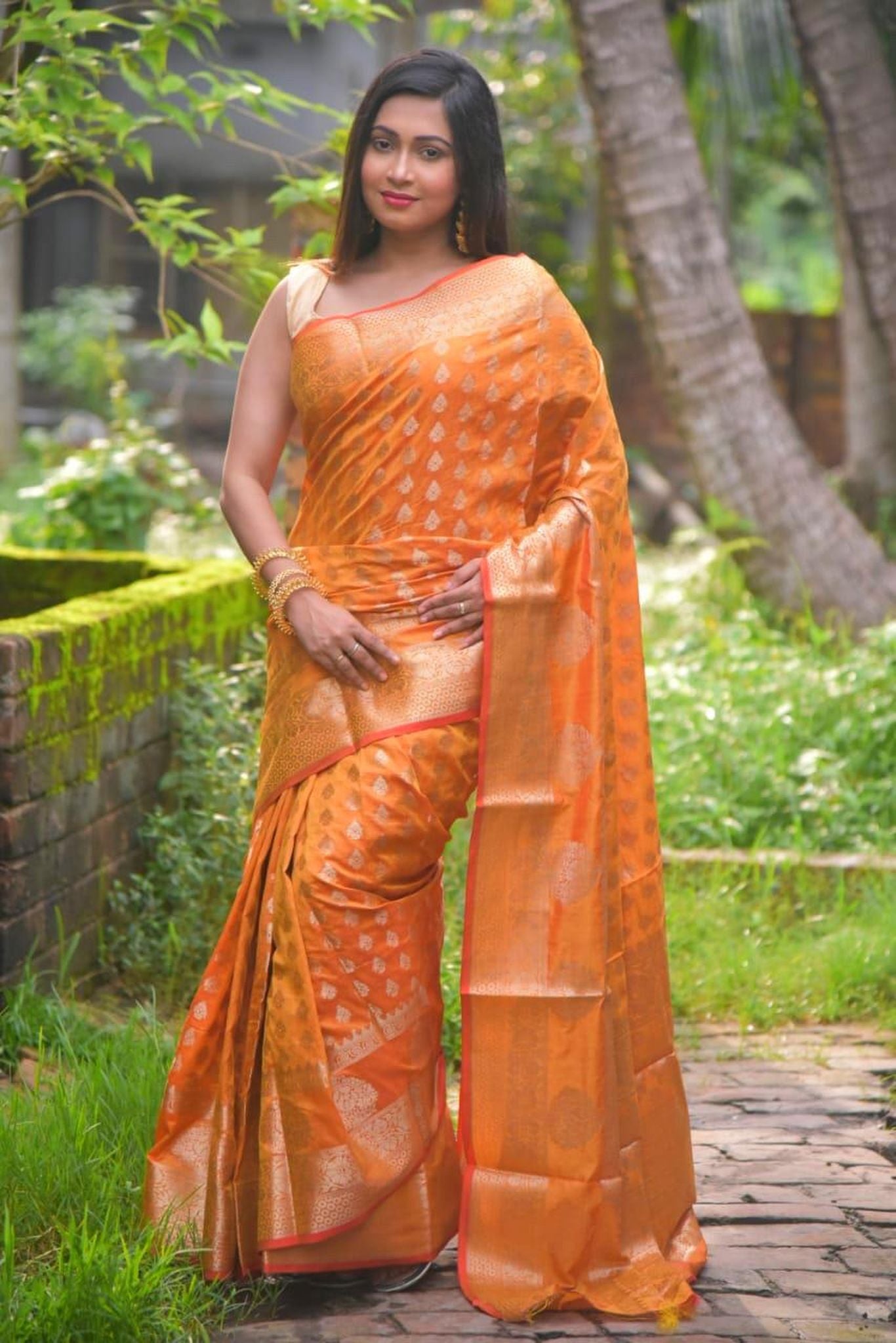 Mesmerizing Crystal Silk Banarasi Looked Saree