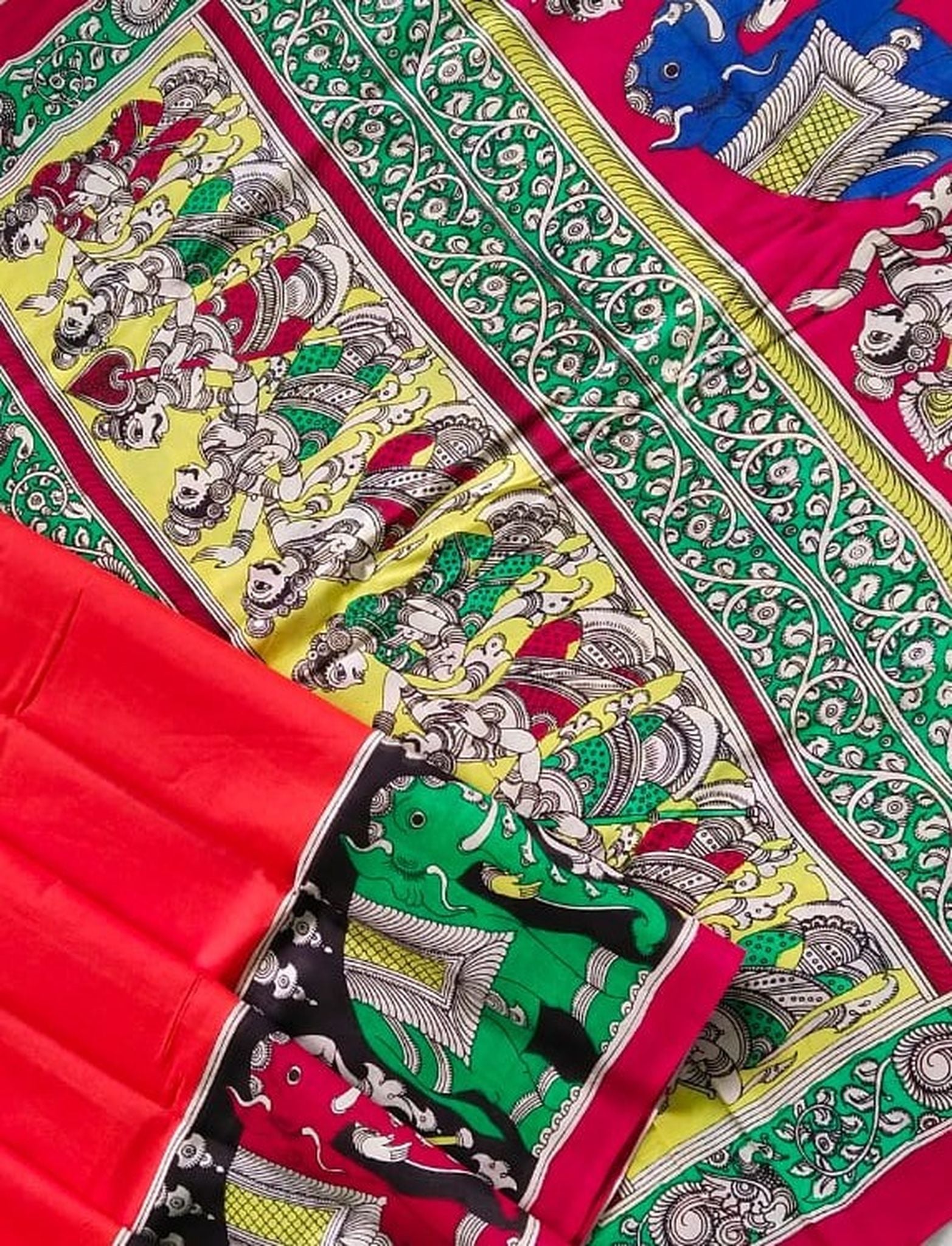 Kalamkari Chennuri Silk Multi Coloured Handpainted Saree