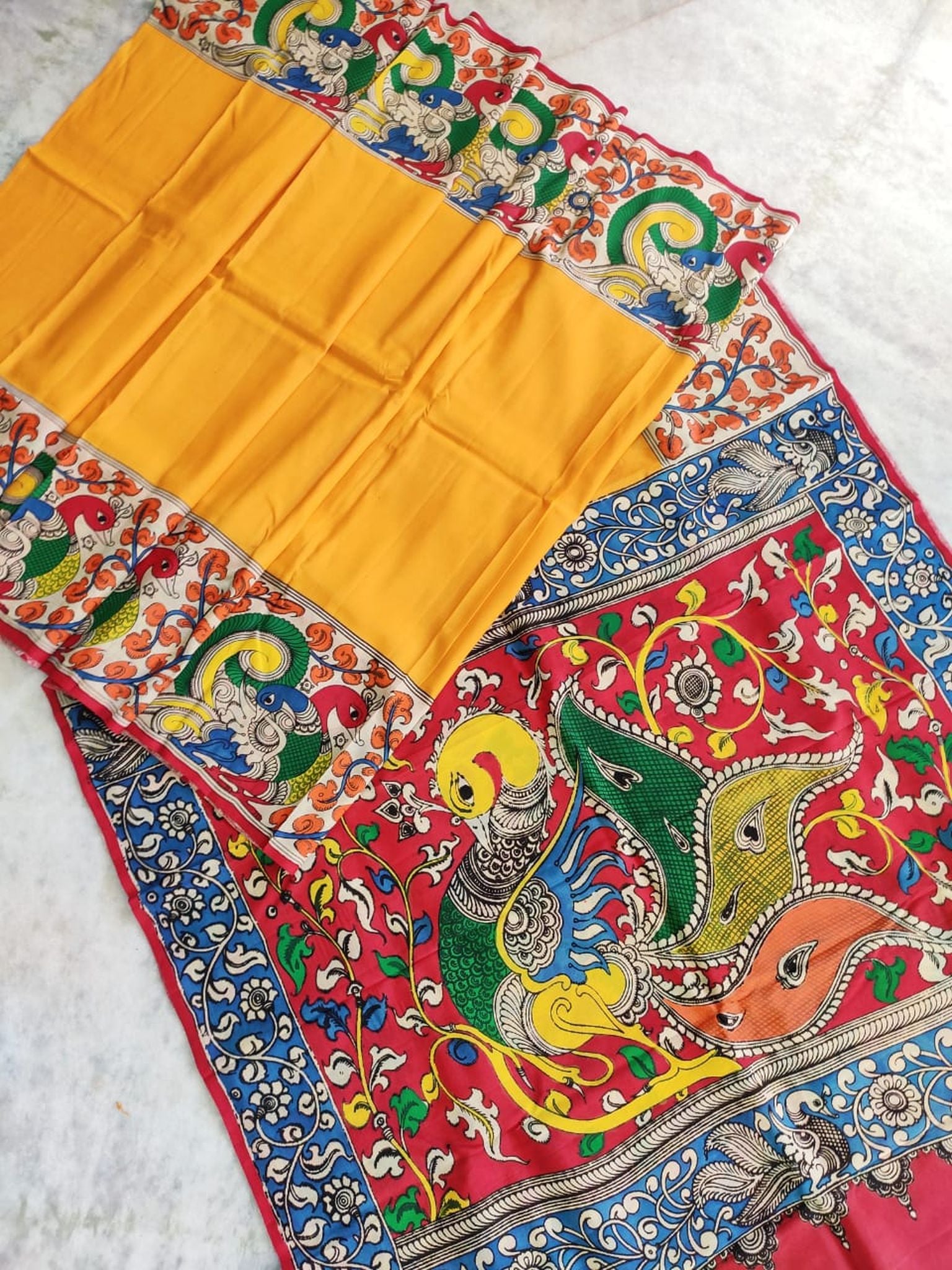 Kalamkari Chennuri Silk Multi Coloured Handpainted Saree